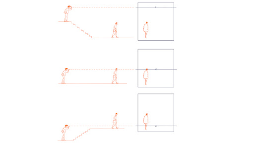 The most important decision is the placement of the horizon line in relation to the important characters and elements such as objects, furniture or buildings in the scene. It's useful to remember that the horizon is on the same level as the imagined eye of the viewer.